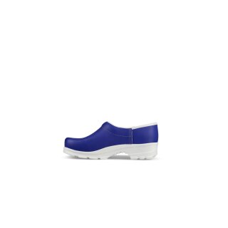 Komfortabler und flexibler Clog. Breite Passform und gute Stoßabsorbierung. Weiches und komfortables LBS-Fußbett aus Schaum und Leder. Erhältlich in den Farben Schwarz und Weiß sowie Blau/Weiß.