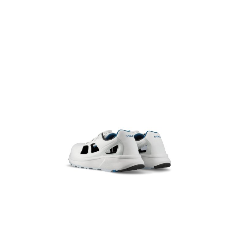 Leichter Sicherheitsschuh mit Öffnungen im Obermaterial für erhöhte Belüftung.?Der Schuh wurde 2022 nach den neuen Standards zertifiziert und verfügt über das BOA® Fit System. Ideal für Personal in der Pharma- und Lebensmittelindustrie. Das Obermaterial besteht aus wasserabweisender Mikrofaser, wodurch sich der Schuh in Kombination mit einem glatten Design leicht abwischen lässt.?Verträgt Abwischen mit Ethanol. Die leichte Zehenschutzkappe aus Aluminium schützt die Zehen vor schweren herabfallenden Gegenständen. Die Laufsohle aus Gummi sorgt für einen guten Bodenkontakt und ist besonders rutschhemmend.?Die Zwischensohle besteht aus weichem, stoßdämpfendem EVA-Schaum (SIKA Aerosol™ Foam), der für einen leichten, komfortablen und flexiblen Schuh sorgt. Die atmungsaktive Einlegesohle ist stoßabsorbierend und besteht unter anderem aus recyceltem PU-Schaum, bei dem Schaumreste aus der Produktion der Einlegesohlen verwendet werden.?PVC-frei und ESD-zugelassen.